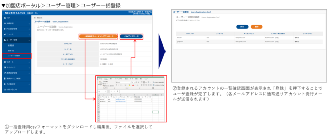 新規導入機能8:加盟店ポータルユーザ一括登録