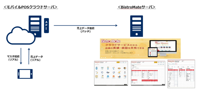 日立システムズ社が提供するレストラン向けASPサービス「BistroMate」と連携できるようになりました。今回の連携により、csvファイルを手動で書き換えるなどの手作業が不要となり、FTP APIによるファイル連携で、1日1回売上データが取り込まれるようになります。