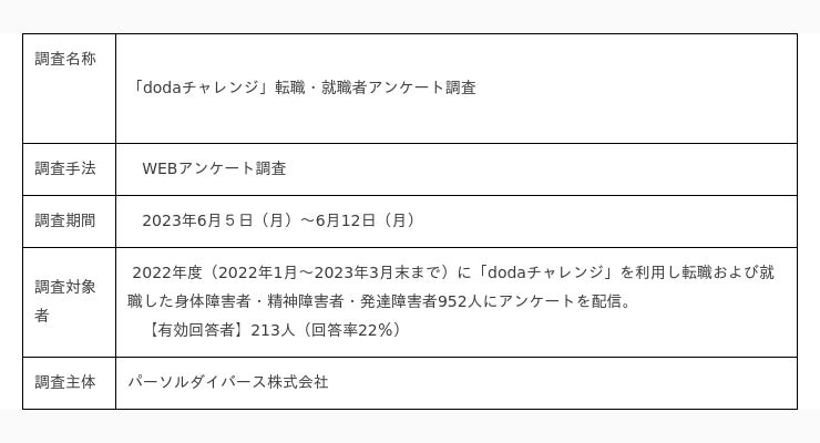 「dodaチャレンジ」障害者の転職・就職後の安定就業を調査