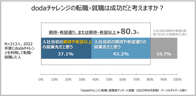 「dodaチャレンジ」を利用して転職・就職先をした障害のある方、就業先の満足度は80.3%