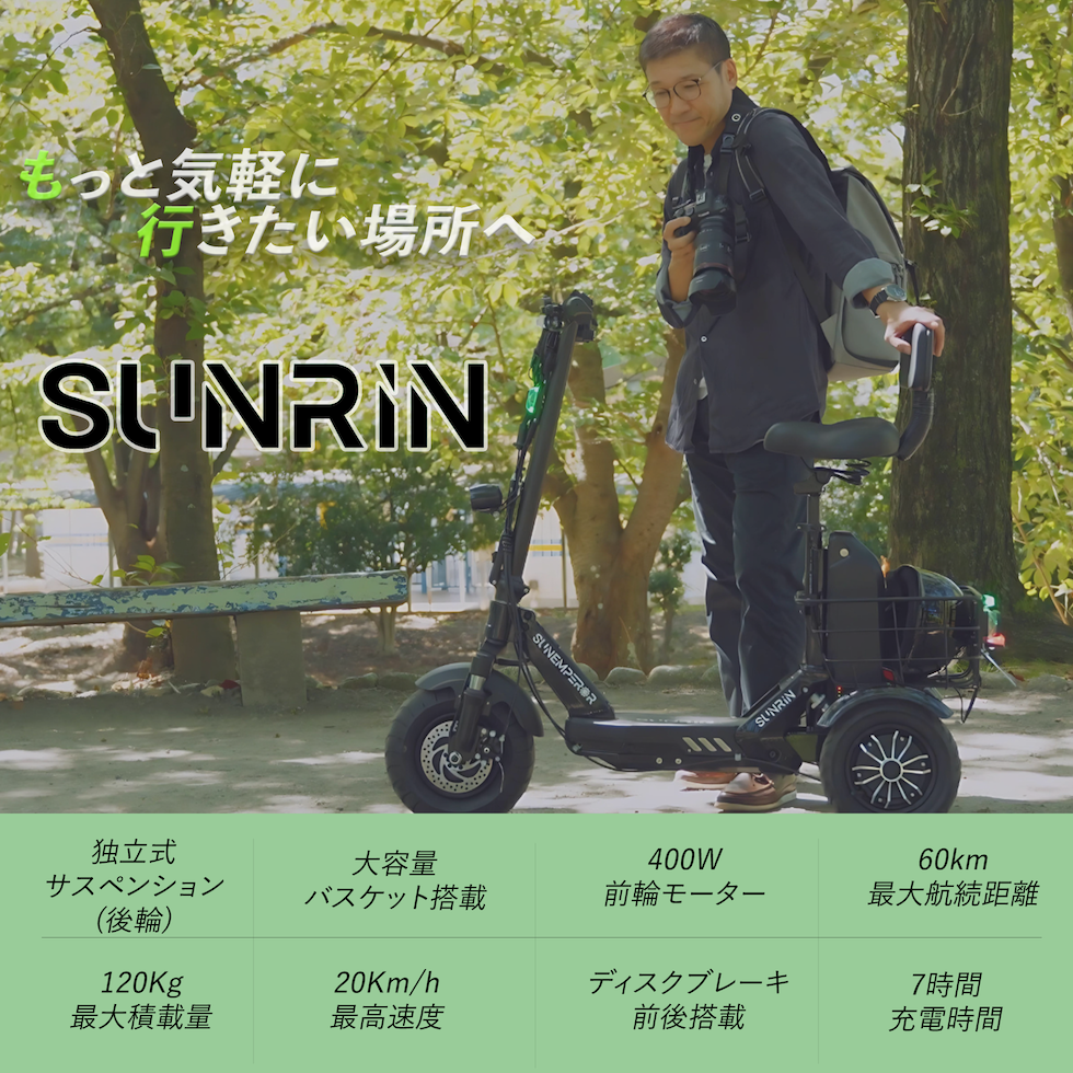 この度、 Sun Emperor(有限会社龍昇)は、2026年4月26日(日)までの期間中、特定小型原付「SUNRIN」などの対象商品をご購入のお客様へ、オプション用品をプレゼントする特別企画を実施。
