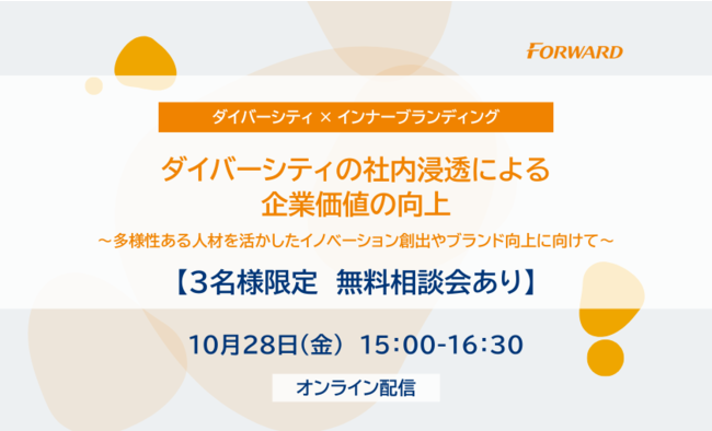 「ダイバーシティの社内浸透による企業価値の向上」無料ウェビナーを10/28(金)開催【3名様限定 無料相談会あり】
