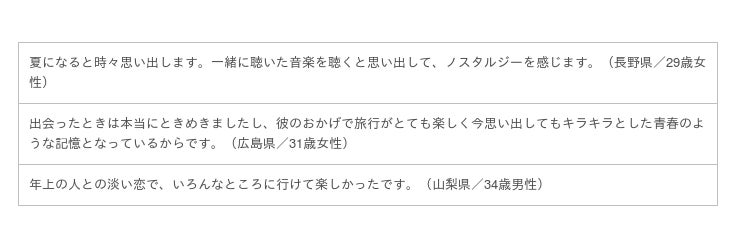 ※アンケートでは、初夏から真夏にかけて出会い実らなかった恋を「ひと夏の恋」と定義して調査。
