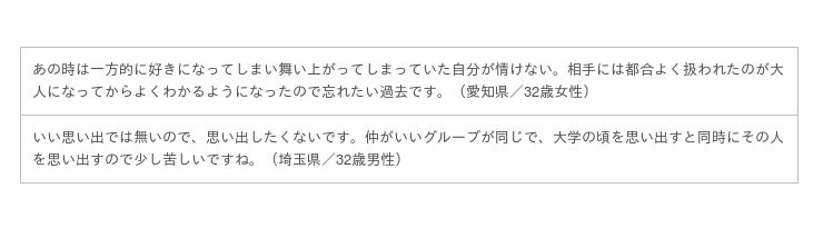 ただ「できれば消し去りたい」という人も8.8%いて、人によって思い出の残り方はさまざまなようです。