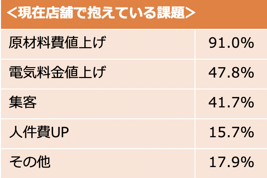 1. パン屋さんの91%が「原材料費の高騰」が課題と回答