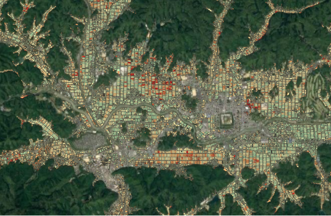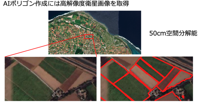 弊社は、50cm級の高解像度の衛星データより、農地を検出、農地区画を自動生成する技術を確立しました。生成された農地区画を「AIポリゴン」と呼んでいます。この技術を用いると国内のみならず、グローバルの農地を瞬時に自動で区画化することができ、1筆ごとに、農地面積も評価可能です。これらの技術は、グローバルな展開が可能な状況であり、既にタイやインドに進出し、活用事例や実証事例があります。国内での特許権利化を既に終え、海外10ヵ国を超える国々でPCT出願を行なっています。