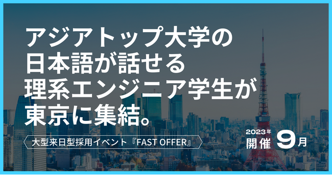 株式会社ASIA to JAPAN(代表:三瓶 雅人 本社:東京都台東区 以下:ASIA to JAPAN)は、 海外の学生と日本の企業をオフラインでマッチングを行う「FAST OFFER」を、2023年9月26日(火)〜28日(木)の3日間で実施いたします。