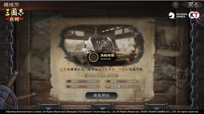 PKシーズン「官渡の戦い」における六大勢力は、戦車を改装することで独自の戦車を所持できます。戦車を開放するには、君主殿がLv.8以上の状態で、機械所を建造する必要があります。その後、機械所で資源を消費して、基本戦車を建造します。戦車は一度しか建造できず、戦闘に敗北しても破壊されることはありません。