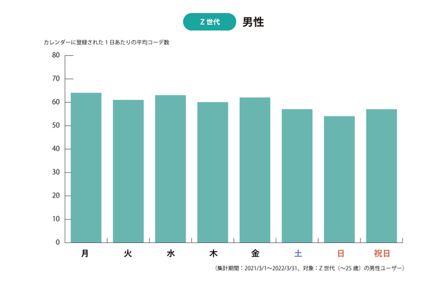 【Z世代・ミレニアル世代】女性は「平日」、男性は「土日祝日」のコーデを重視 オンライン・クローゼットアプリ「XZ(クローゼット)」500万件突破したカレンダーへの登録コーデの傾向から判明