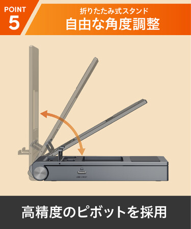 高精度のピボットを採用し、自由に角度を調整。何万回もの折りたたみに耐える耐久性を持っています。