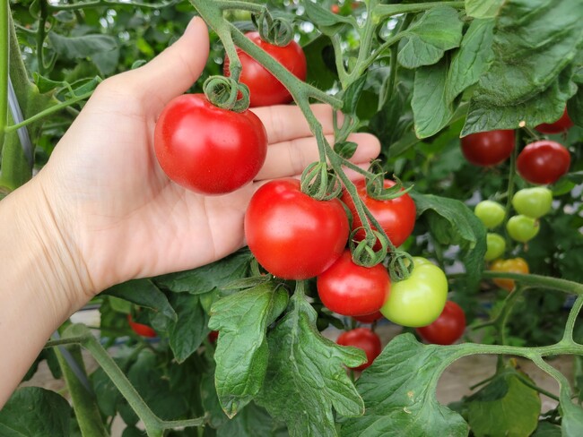 村林さんのビニールハウスでは、温度管理や水やりと肥料の繊細なバランスを重要視しています。BUBBLES BURGERのスタッフが実際にハウスを訪れ、村林さんから栽培のこだわりを聞き、収穫の体験をさせて頂きました。