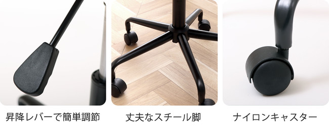 素 材 :ウレタンフォーム、合板(本体)、ポリエステル(張り材)、金属(脚)、ナイロン(キャスター)