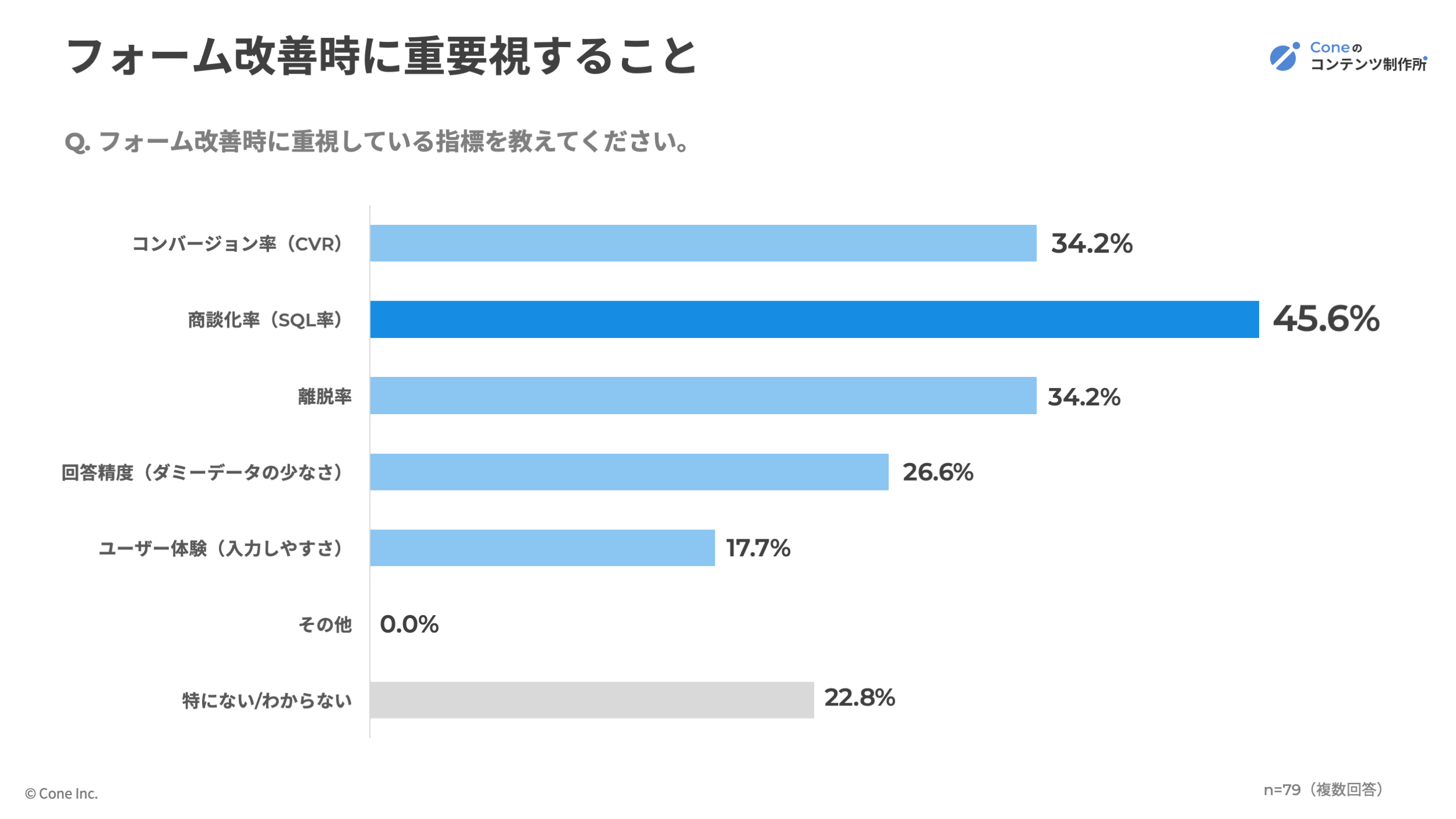 運用者側がフォーム改善で最も重視する指標は「商談化率」(45.6%)です。