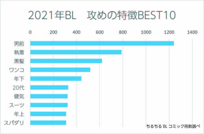 BLのキャラクターとしてかならず設定される「攻め」と「受け」ですが、2021年に発行されたBLコミックでは、どんな属性が多かったのでしょうか。