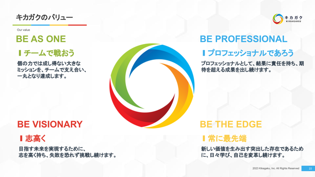 キカガクでは、『あるべき教育で人の力を解放する』というミッション達成を全社員が目指して事業活動を行っています。社員一人ひとりが『あるべき教育』とは何かを熟考し、ミッション実現のためにはどのようにバリューを体現すれば良いかを自発的に考え、行動する文化が根付いています。こうした社員の姿勢と文化が評価され、今回の結果に繋がりました。