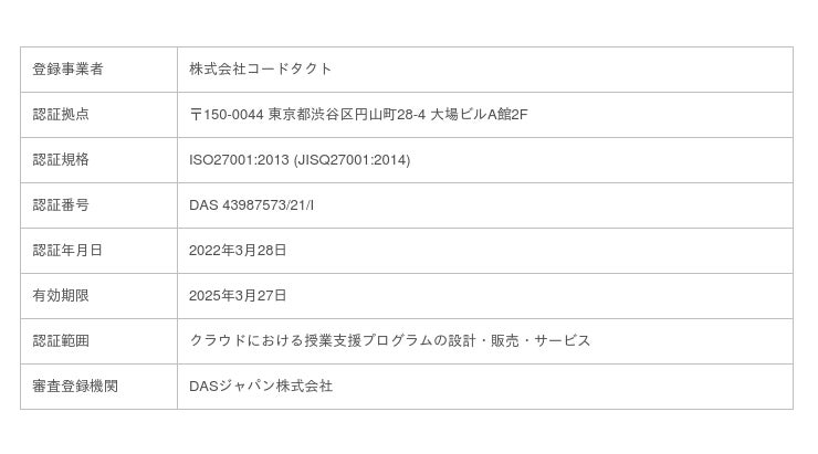授業支援クラウドを提供するコードタクトが、国際規格に基づく情報セキュリティマネジメントシステム(ISMS)認証を取得