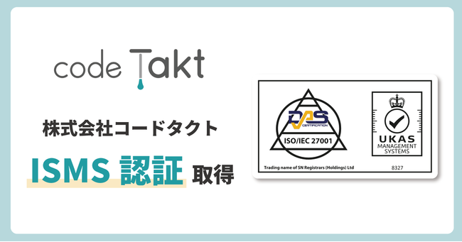 株式会社コードタクト(本社:東京都渋谷区、代表取締役:後藤 正樹、以下当社)は、情報セキュリティマネジメントシステム(ISMS)に関する国際規格であるISO27001の認証を2022年3月28日(月)付で取得しました。