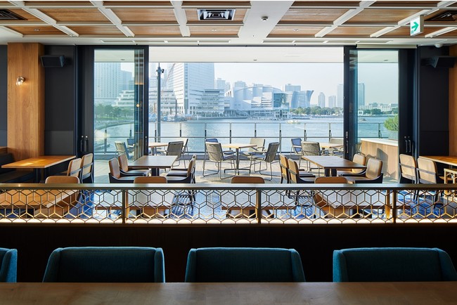 様々なクラフトを実現する、新たな?大人達の集合場所”。海に囲まれた横浜ハンマーヘッド内の2フロアからなる店内は、開放感のあるメインダイニング、テラスに加えて、レストラン内にビール醸造所・ジン蒸留所・コーヒー焙煎所を併設しています。存在感を放つバーカウンター、店内まで香りを漂わせるコーヒー焙煎所。そしてガラス張りのビール醸造所を見ながら螺旋階段を上ると、ジン蒸留所と落ち着いた雰囲気を醸し出すバーエリア。オープンキッチンを中心に広がるメインダイニングからはみなとみらいの景色が一望でき、まるで船上で食事をしているかのような気分を味わうことができます。