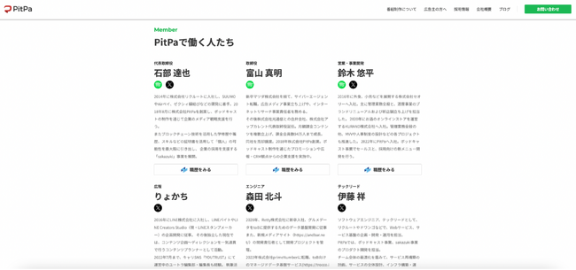▼PitPaの採用ページに一部メンバー(※外部公開について承諾済み)の職歴を掲載しています。こちらもぜひ一緒にご覧ください。
