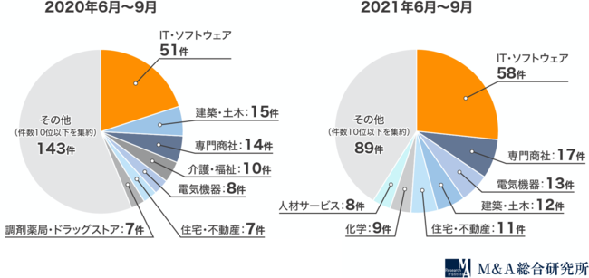 ■システム・ソフト開発などの「IT・ソフトウェア」関連企業を対象にしたM&A件数が最多