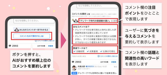 コメント欄の注目ポイントや話題を一目でわかりやすく ユーザーへ新たな気づきを提供し、ニュースの理解促進をサポート