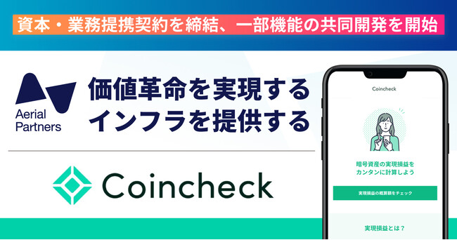 エアリアルパートナーズ、コインチェックと資本・業務提携契約を締結し、一部機能の共同開発を開始