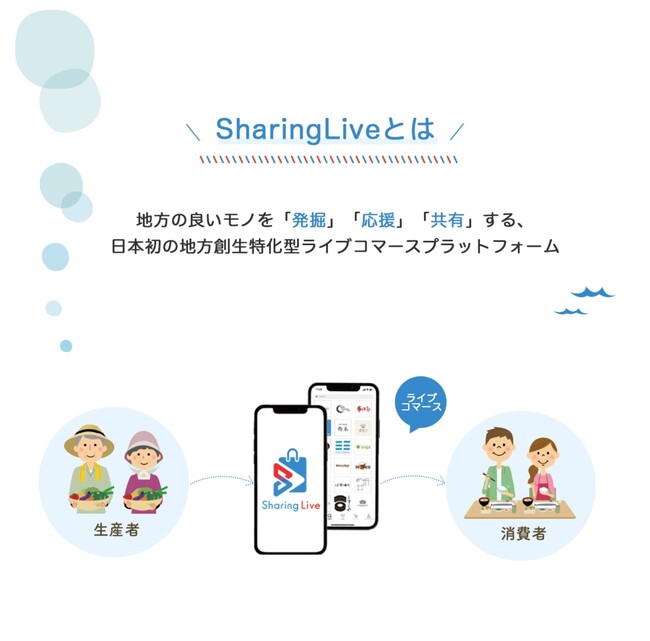 新型コロナウイルスの感染拡大の影響により、マーケティング手法や人々の生活に大きな影響を及ぼしています。新しい価値を世間は模索している中、変わらないのは「繋がり」への追求です。特に地方は持続可能な社会に向けて観光産業の復興などの課題もあり、オンライン「体験」から「応援」、そして「共有」という助け合いの流れを求めています。SharingLiveが実現したいのは、地場産業の先にある「人と人とのつながり」の見える化です。ライブコマースの特徴である双方向だからこそ、生産者との繋がり、共感を生み出すキーになっていると我々は考えています。