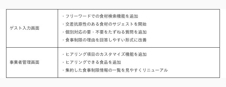 ホテル・飲食店・ウェディングの集客力向上に!アレルギーヒアリングシステムの大型アップデートを実施
