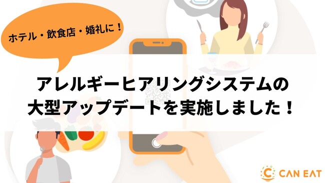 株式会社CAN EAT(本社:東京都新宿区、代表取締役社長:田ヶ原絵里、以下「CAN EAT」)は、QRコードひとつでゲストの食事制限に関する正確な情報を把握できる「アレルギーヒアリングシステム」の大型アップデートを実施しました。画面の見やすさと操作性を向上させるとともに、フリーワードでの検索機能や類似食品のサジェスト機能、業界からご要望が多かった食材のカスタマイズ機能などを新たに設け、ヒアリングの精度と柔軟性を高めました。