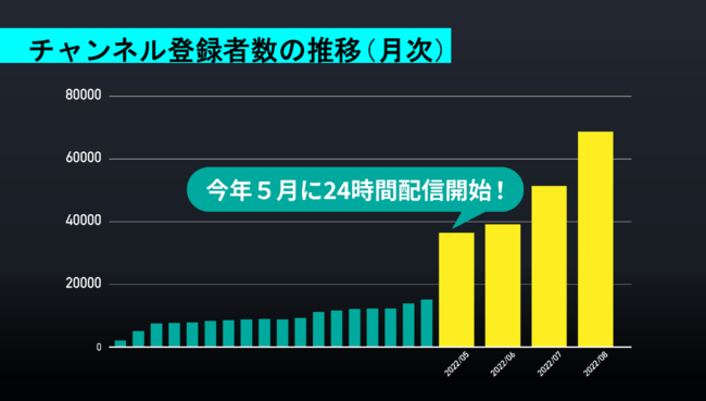 今年8月には25日間(600時間)配信を行い、81万人に視聴されるなど、有名VTuberを凌ぐ数字を叩き出し、AI VTuber初の登録者数7万人超えを達成しました。