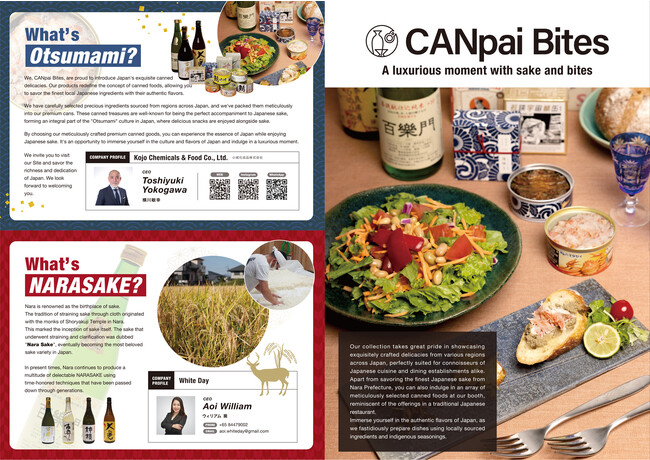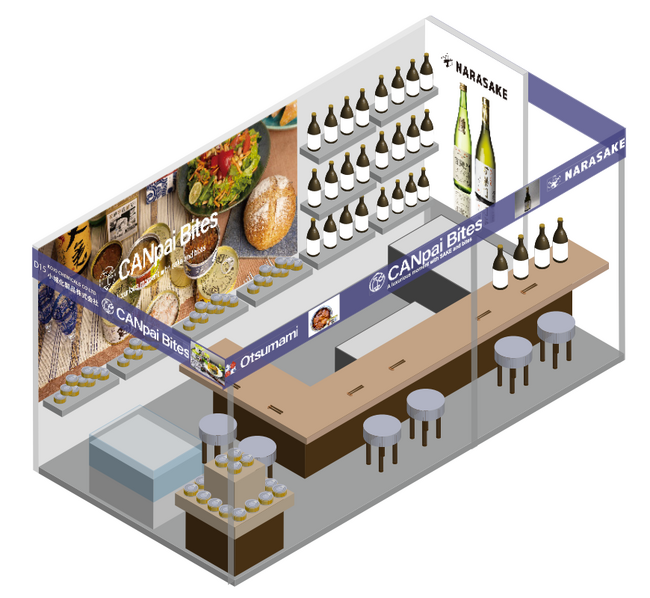 ブース名である「CANpai Bites」は、缶詰の「CAN」に、日本語の「乾杯」を掛け合わせ、軽くつまんで食べられるおつまみを意味する「Bite」を組み合わせています。