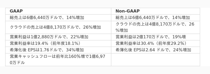 当社は、これらのNon-GAAP財務指標を、対応するGAAP財務指標と合わせて使用することにより、投資家に当社の事業の財務業績に関する有用な補足情報を提供ことができると考えています。また、Non-GAAP財務指標は、投資家の皆様に当社の継続的な業績に関する指標として有用であると考えています。当社の経営陣は、当社事業を理解・管理・評価し、財務上・戦略上・経営上の意思決定を行うために、定期的にNon-GAAPベースの財務補足指標を社内で使用しています。これらのNon-GAAP財務指標は、経営陣が将来の期間についての計画を立て、予測する際に使用する主要な要因の一つです。当社のNon-GAAP財務指標は、単独で、あるいは同等のGAAP財務指標の代用として考慮されるものではなく、GAAPに準拠して作成された当社の連結財務諸表とのみ併用されるべきものです。これらのNon-GAAP財務指標は、他社が採用しているNon-GAAP財務指標とは大きく異なる場合があります。GAAP ベースと Non-GAAP ベースの業績の調整は、連結損益計算書直後の表で行っています。当社はNon-GAAPベースのガイダンスのみを提供しています。GAAPベースの業績として報告される将来の事象は予測不可能かつ不確実であり、将来起こりうる企業買収の影響など、GAAPとNon-GAAPベースの財務指標間の調整が必要となるため、GAAPからNon-GAAPへのガイダンスの調整はできません。従って、将来の期間について、Non-GAAPベースの財務指標に基づくガイダンスを対応する GAAPベースの財務指標に調整することは、不合理な努力を伴わない限り可能ではありません。