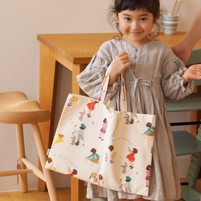 「Belle&Boo」の絵本に登場するキャラクターの様々なイラストがデザインされたレッスンバッグなどの
