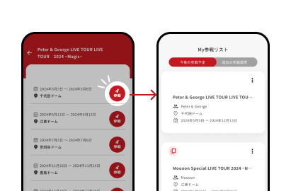 全国各地で「追っかけ」をしている人や、推しを複数「掛け持ち」する方々の声を受けて生まれたこの機能は、自分のライブ・イベントへの参戦予定を「My参戦リスト」として一覧で管理できます。