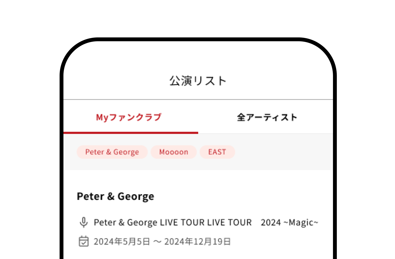 「公演リスト」スケジュールを一覧から選択