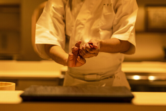 JR新宿駅から徒歩4分、西武新宿駅徒歩2分、新宿歌舞伎町の真ん中に店を構える『鮨やまけん新宿東口店』は、「見て楽しむ」「食べて楽しむ」を心がけ、味だけでなく五感で感じられる“究極の鮨”を提供。定番から季節ものまで、長年の経験で培った目利きで選び抜き、本当に良いと思った鮮魚のみ買い付け熟練の職人が心を込めて握ります。店内は木の温かみを感じさせつつモダンでスタイリッシュなお洒落空間。デートや記念日など大切な日のご利用に最適です。
