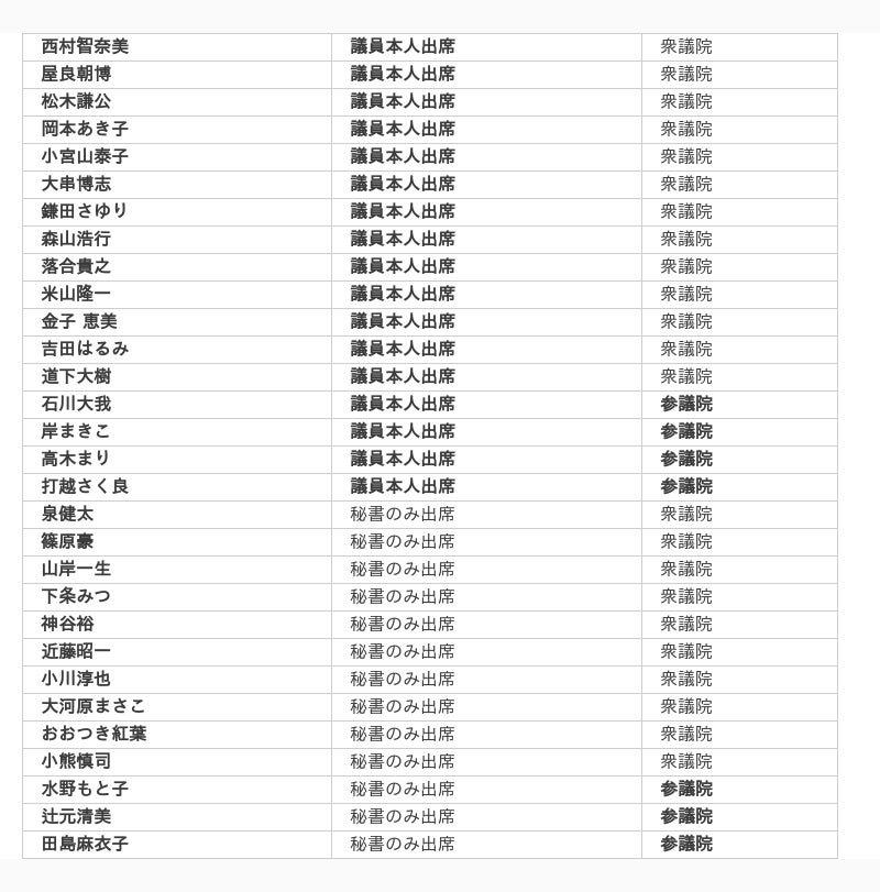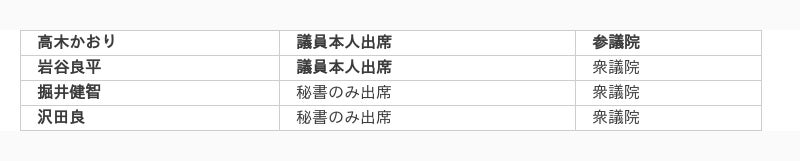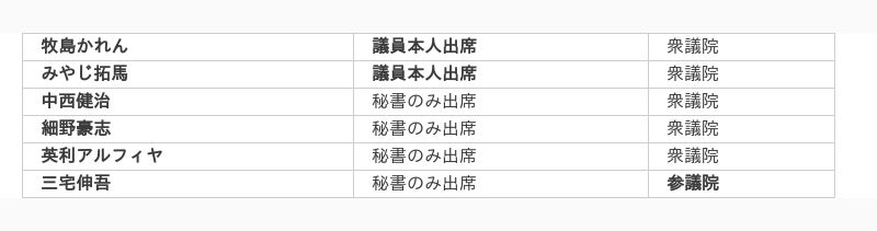 ※秘書のみ出席含む。()内の数字が、議員本人が来場した人数