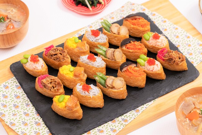 「おこわいなり」は、年間を通して人気のおこわをはじめ、旬の食材を使用した期間限定メニューを一口サイズの「いなり」に詰め、一度に楽しめるロングセラー商品。このたび、さらに見た目も美しく、さまざまなおいしさを一つひとつに詰め込んだ新感覚のおこわいなり「美華(みはな)おこわいなり」を店舗限定で発売いたします。秋のイベントやお出かけの機会、お土産にもぴったりな、さまざまなシーンでお楽しみいただける新商品です。