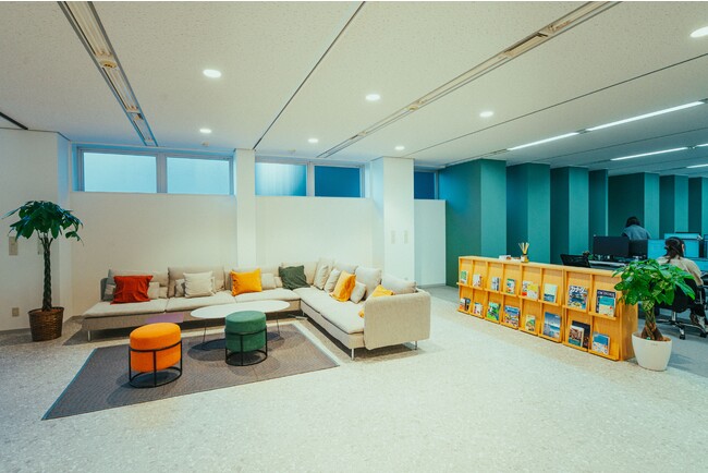 オフィス内にはカラフルなソファがあり、社員同士の憩いの場所となっています。旅行先のお土産を置いたり、休憩時間に社員同士で会話をしたりと部署間を跨いだコミュニケーションの場として使用しています。