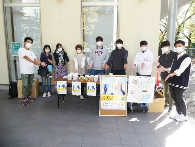産学連携プロジェクト『一杯からはじめよう!脱・使い捨てAction』とは、アサヒユウアス株式会社の何度でも使える植物由来のエコカップ「森のタンブラー」と水道直結ウォーターサーバー「ウォータースタンド」を活用し「使い捨て」という消費行動の見直しとリユースカップの普及に取り組む活動です。2021年11月にキャンパス内に「ウォータースタンド」を設置したところ、約1か月弱で500mlペットボトル約3500本に相当する給水が行われました。