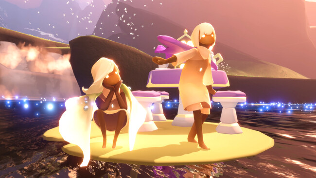 「花笑む日々」は、花芽吹く春の訪れを祝うゲーム内の期間限定イベントで、毎年世界中のユーザーにお楽しみいただいております。今回の「花笑む日々」は、大きく2段階のフェーズに分かれており、イベントの第1週目は嵐が山々を席巻し、雷雨がふりそそぎ、蕾たちが芽吹きます。第2週から第3週目にかけては、空を覆っていた雲が晴れ、新たな色と命が生き生きと生い茂ります。また、第2週目からは、光のクラゲに変身して風景を楽しむことができます。草原連峰にいる花笑む案内人のそばに出現する瞑想サークルで祈りを捧げることで光のクラゲに変身し、水の底から雲の上までを探索することができます。フェスティバル・テクノロジーを活用したこの仕掛けは、イベント終了までの期間中お楽しみいただけます。
