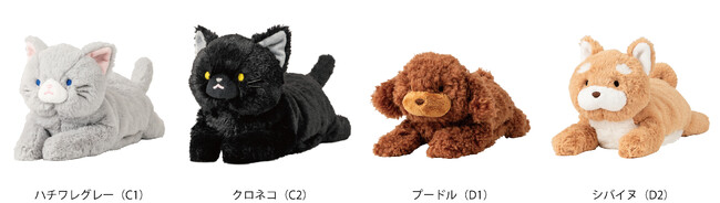 ラインアップはハチワレグレー(C1)、クロネコ(C2)、プードル(D1)、シバイヌ(D2)の、愛らしい表情の4匹です。
