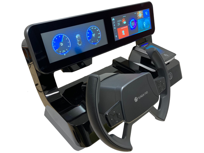加賀FEIが出展するコックピットデモでは、「CGI Studio」の高性能のグラフィックスエンジンによるメータークラスターと車内エンターテインメントシステムのスムーズな画面遷移などを実現しています。