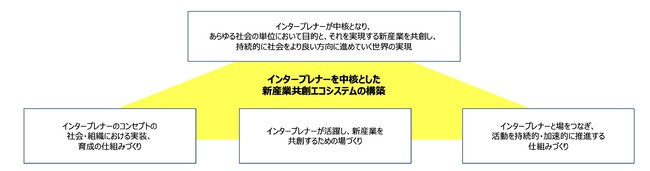越境人材(インタープレナー)を中核とした新産業共創の仕組みを社会として整備していくことで、最大多様価値の創造を可能にするだけでなく、21世紀型の価値創造のパラダイムをリードし、わが国が改めて存在感を示すことができるものと考える
