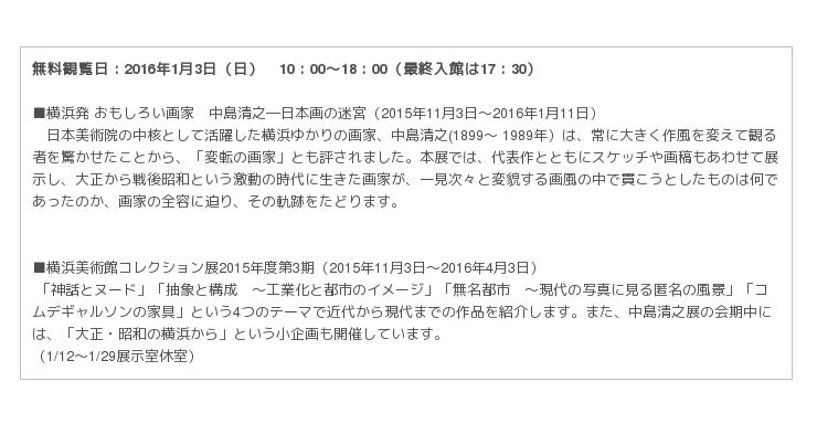 横浜美術館からのお年玉。1月3日(日)は観覧無料!