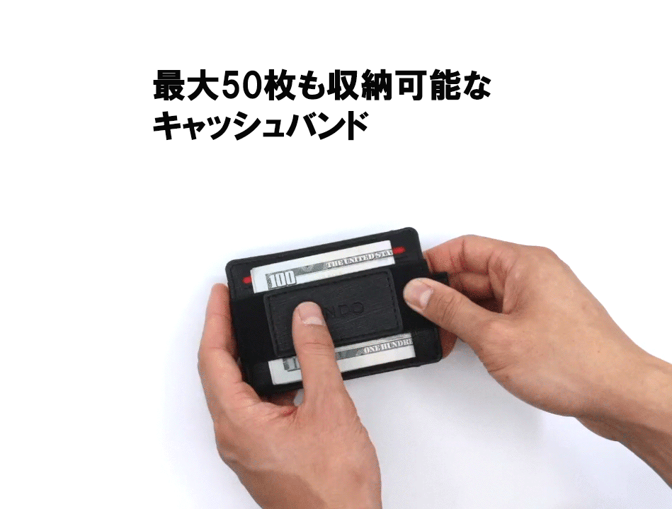 BANDO2.0ではバンドに改良を加えバンド裏側に滑り止めのシリコンビーズを施しました。少ない枚数の紙幣もしっかりと挟むことができます。