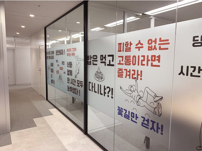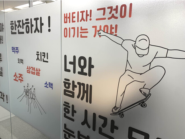 K Village初の試み!ガラス張りの壁面に韓国語!