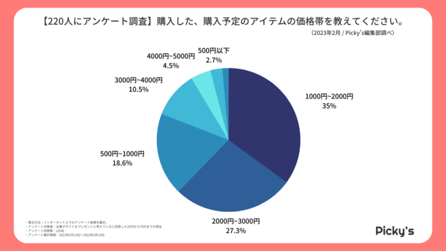 大体1000円〜3000円の価格帯が最も多く選ばれました。