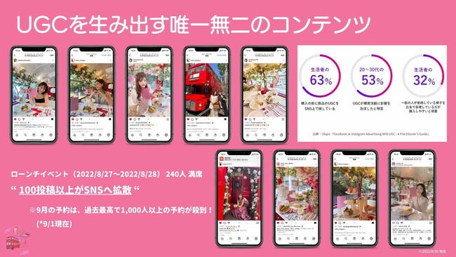 自然にSNSへ投稿してしまう体験型のアフタヌーンティーバスツアー。拡散されること間違いなし。