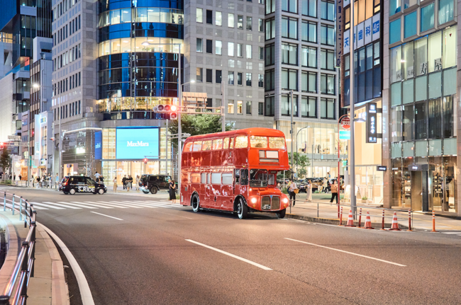 全高4.38m、全幅2.43m、全長8.39mのロンドンバス車体をラッピングした広告は圧巻。